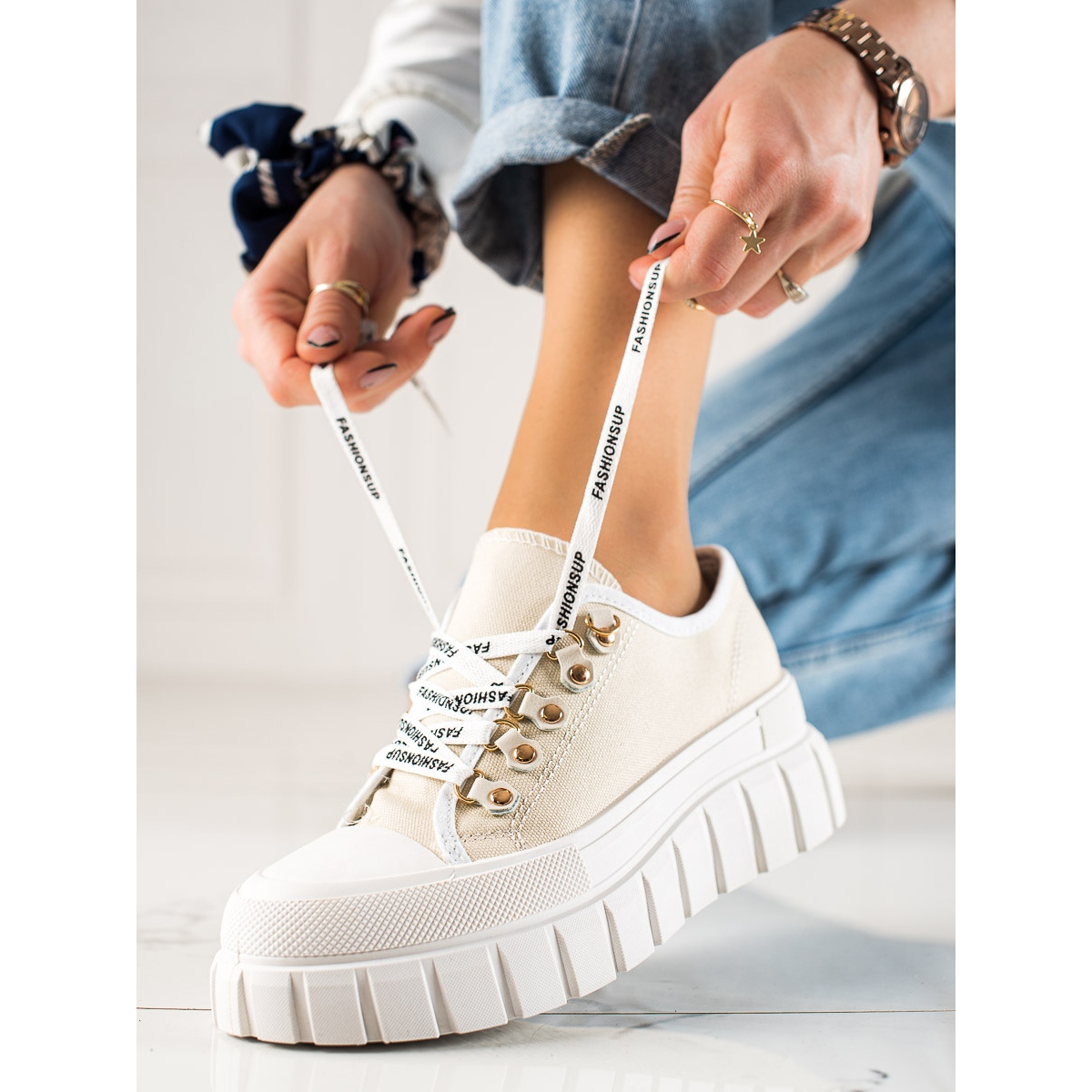 Entdecken Sie modische und bequeme Schnür-Plateau-Sneaker vom Hersteller TRENDI, die sich perfekt für das Alltags-Styling eignen. Diese beigen Schuhe sind eine ideale Wahl für Frauen, die Wert auf Komfort und einen modischen Look legen.