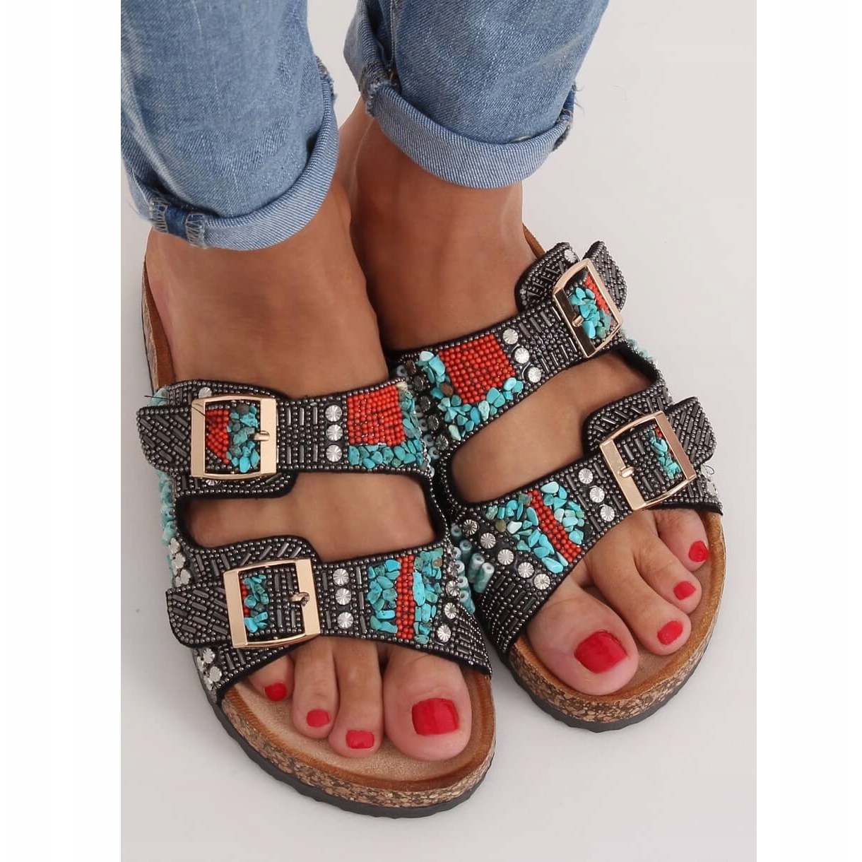 Wir präsentieren Scholki Damen-Slipper mit Perlen in Schwarz (Modell CK133P Black). Diese einzigartigen zehenstegsandalen mit Korksohle sind die perfekte Wahl für Sommertage und kombinieren lässigen Stil und Originalität mit ethnischen Akzenten. Auffällige Dekorationen mit Steinen verleihen ihnen einen einzigartigen Charakter und durch das mehrfarbige Design passen sie perfekt zu verschiedenen Urlaubsstilen.