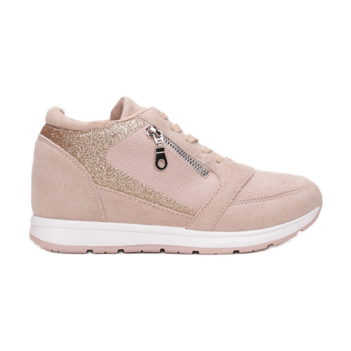 Ein zusätzlicher Vorteil ist ein dekorativer goldener Reißverschluss neben den Schnürsenkeln sowie Glitzereinsätze, die ihnen einen einzigartigen Charakter verleihen. Das 5,5 cm hohe Plateau mit Profilsohle betont nicht nur die Figur, sondern beeinflusst auch den Gehkomfort.