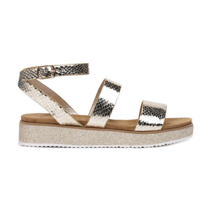 Entdecken Sie Eleganz und Komfort in den Plateausandalen Vices 100-167-60-Gold! Diese einzigartigen goldenen Sandalen sind die perfekte Wahl für Frauen, die Wert auf Stil und Komfort legen. Das 4 cm hohe Plateau sorgt nicht nur für ein paar Zentimeter mehr, sondern sorgt auch für einen hohen Tragekomfort.