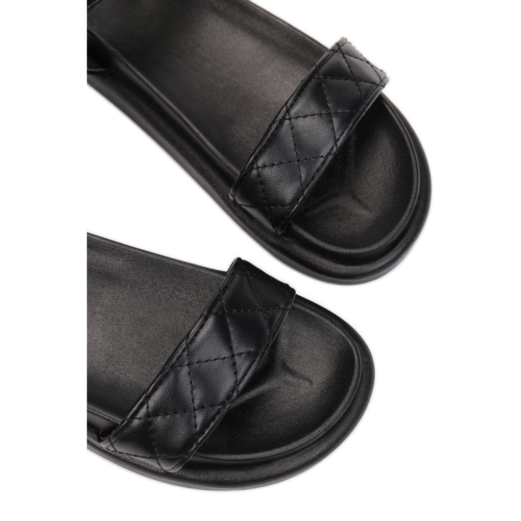 Die Schuhe werden mit einem praktischen Klettverschluss befestigt, was das An- und Ausziehen extrem erleichtert. Auf einer flachen Sohle mit Profilierung sorgen sie für Komfort auf jedem Untergrund und sind durch die Absatzhöhe von 3 cm alltagstauglich. Die aus hochwertigem Faux-Wildleder gefertigten Sandalen sind nicht nur ästhetisch, sondern auch pflegeleicht, und die Steppnähte sorgen für Originalität.