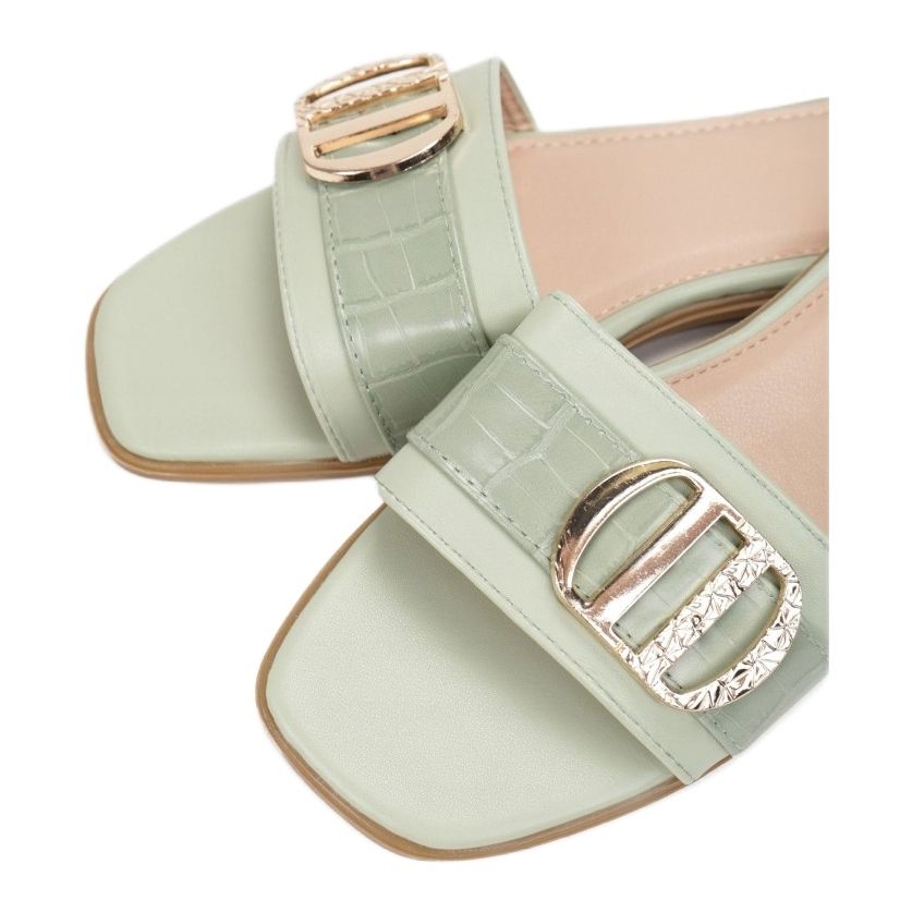 Entdecken Sie Eleganz und Komfort in den grünen zehenstegsandalen Vices 12C-61. Diese modischen flachen zehenstegsandalen eignen sich perfekt für den täglichen Gebrauch und verleihen Ihrem Styling einen einzigartigen Charakter. Eine gepflegte, quadratische, offene Spitze und ein breiter Riemen um die Finger mit einem dekorativen Detail, das Krokodilleder mit Schnalle imitiert, sind eine perfekte Kombination aus Ästhetik und Funktionalität.