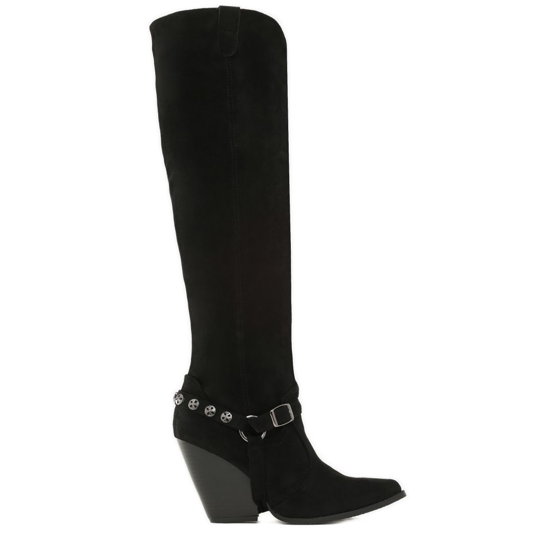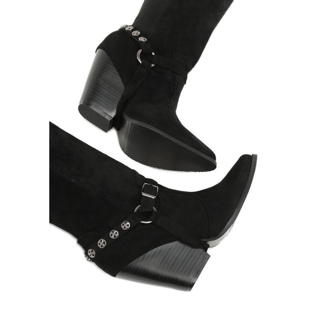 Lernen Sie die modischen Stiefel Vices 3323-38 in elegantem Schwarz kennen, die Ihr Styling perfekt ergänzen. Diese einzigartigen Damenschuhe aus ökologischem Wildleder kombinieren den klassischen Stil von Cowboystiefeln mit einem modernen Modeansatz.