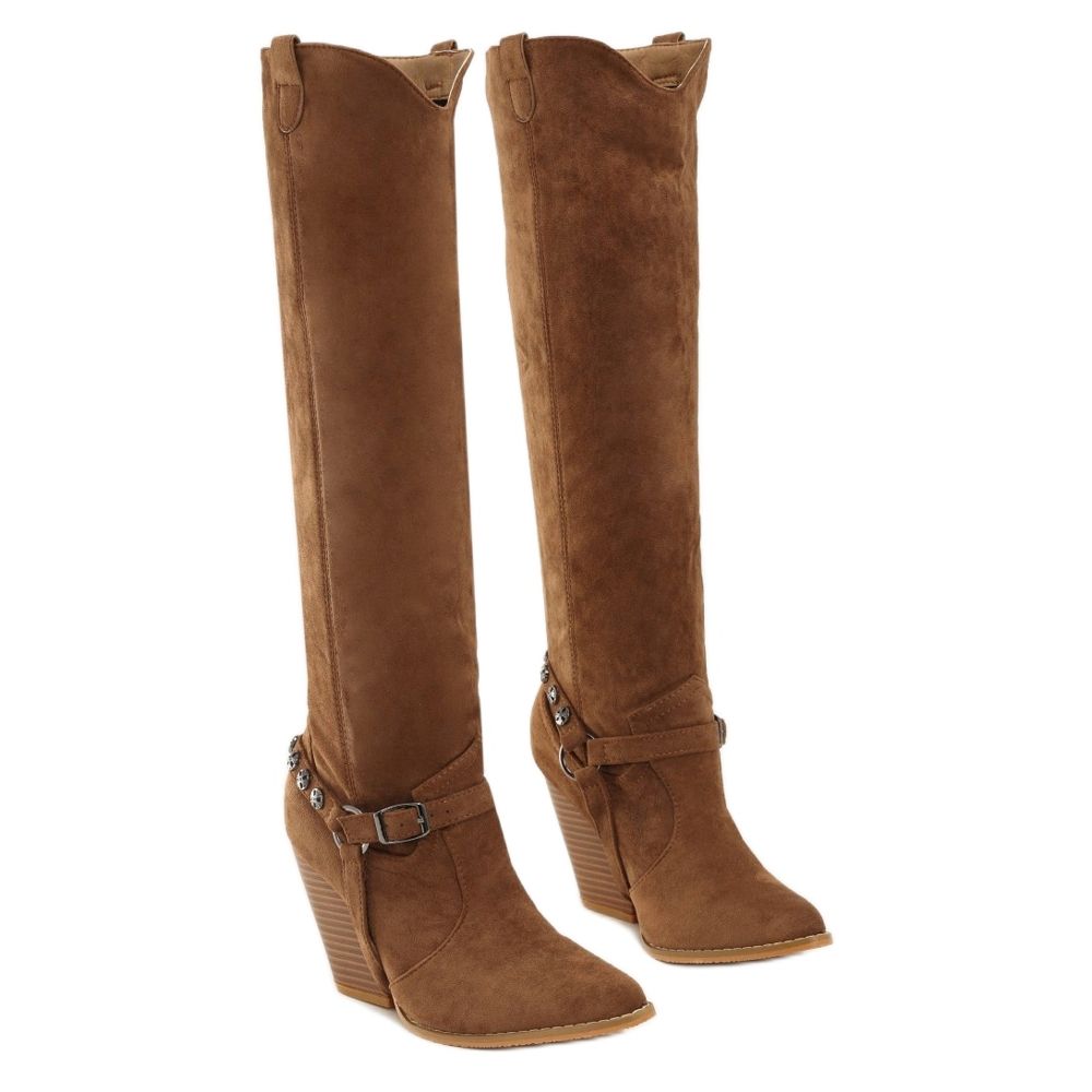 Wir präsentieren die braunen Cowboystiefel Vices 3323-54, die die perfekte Kombination aus Stil und Komfort darstellen. Diese aus hochwertigem Öko-Wildleder gefertigten Overknee-Stiefel mit hohen Absätzen werden mit Sicherheit die Aufmerksamkeit jedes Liebhabers modischer Accessoires auf sich ziehen.
