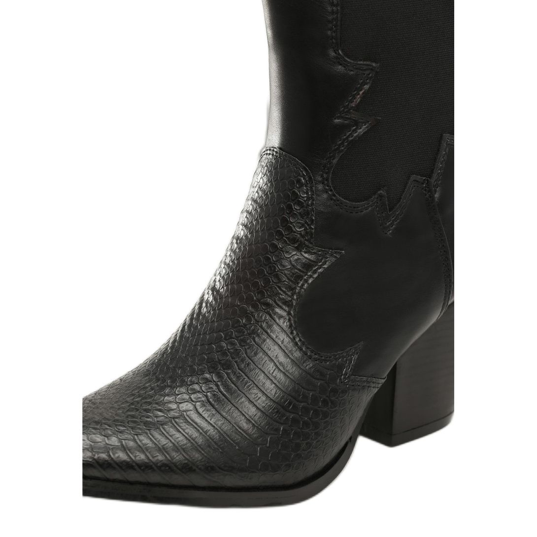 Die Cowboystiefel von Vices zeichnen sich durch einen 8 cm hohen konischen Absatz aus, der für dezente Eleganz sorgt und gleichzeitig für Stabilität sorgt. Die spitze Spitze unterstreicht ihre ursprüngliche Form und macht sie zu einer perfekten Ergänzung sowohl für alltägliche als auch für anspruchsvollere Stile. Aus hochwertigem Faux-Wildleder gefertigt, sind sie nicht nur optisch ansprechend, sondern auch umweltfreundlich.