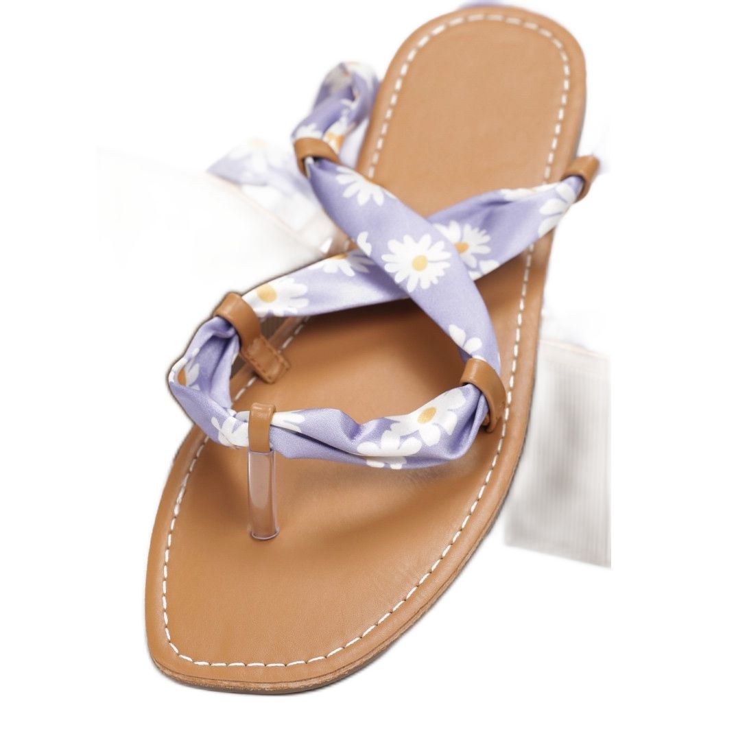 Mit einem 1 cm hohen flachen Absatz eignen sich diese Sandalen perfekt für den Alltag und besondere Anlässe. Das dominante Blumenmuster in Kombination mit der intensiven violetten Farbe macht sie zur perfekten Wahl für Frühlings- und Sommertage.