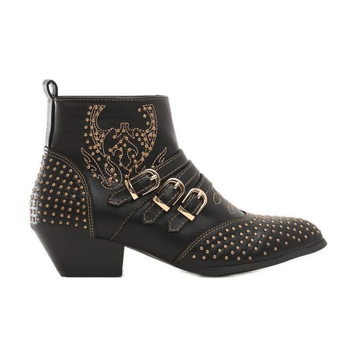Die Stiefel werden mit einem seitlichen Reißverschluss geschlossen, was das An- und Ausziehen erleichtert. Darüber hinaus ist ihr Design durch subtile Details in Form von kleinen Strasssteinen und drei stilvollen Schnallen bereichert, die ihnen Originalität verleihen. Die mandelförmige Spitze und das hohe Knöcheloberteil sorgen für Eleganz und Chic, und die synthetische Sohle sorgt für Strapazierfähigkeit und Halt bei jedem Schritt.