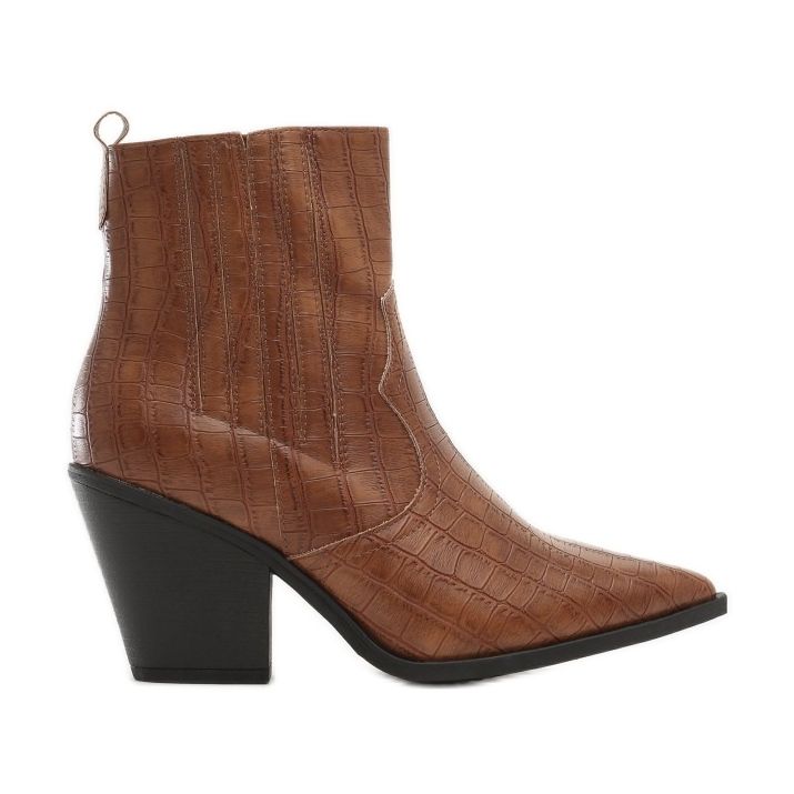 Wir präsentieren braune Cowboystiefel Vices 7338-68-camel, die perfekt zur Garderobe jeder Frau passen. Diese eleganten Stiefeletten aus hochwertigem Faux-Wildleder vereinen Stil, Komfort und Funktionalität. Ihre leicht isolierte Innenseite macht sie perfekt für Frühlings- und Herbsttage.