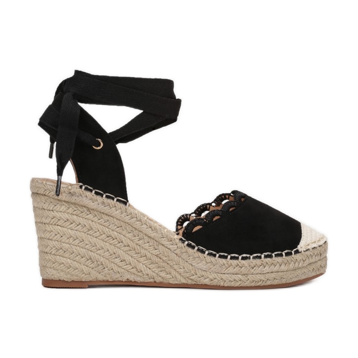 Wir präsentieren schwarze Wedge-Espadrilles Vices 7369-38-black – die perfekte Wahl für Frauen, die Wert auf Stil und Komfort legen. Diese modischen Schuhe aus hochwertigem Öko-Wildleder vereinen Eleganz mit Alltagsfunktionalität.
