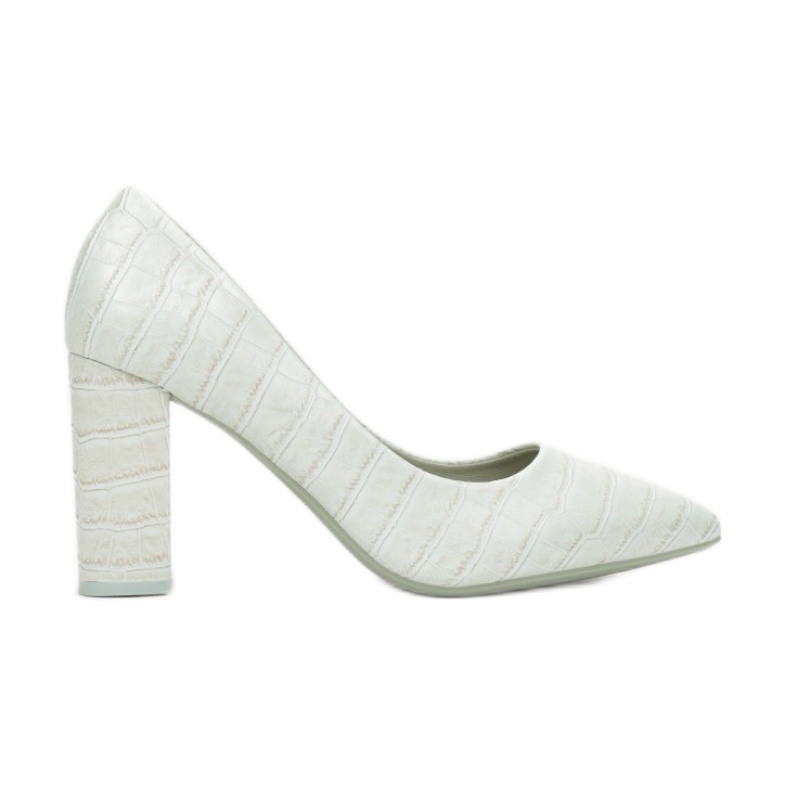 Auf einem stabilen 8,5 cm hohen Absatz sitzend, verlängern die Pumps nicht nur Ihre Beine, sondern sorgen auch für Selbstbewusstsein. Ein interessanter Akzent ist die Prägung von Krokodilleder, die dem Schuhwerk einen originellen Charakter verleiht – sowohl auf der Außenseite als auch an der Ferse.