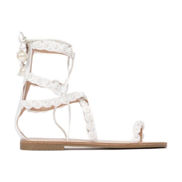 Die Sandalen bestehen aus hochwertigem ökologischem Leder, das für Langlebigkeit und einfache Pflege sorgt. Die offene Spitze und der 1,0 cm flache Absatz garantieren ganztägigen Tragekomfort. Ein zusätzlicher Vorteil sind Strasssteine, die den Schuhen einen stilvollen Charakter verleihen.