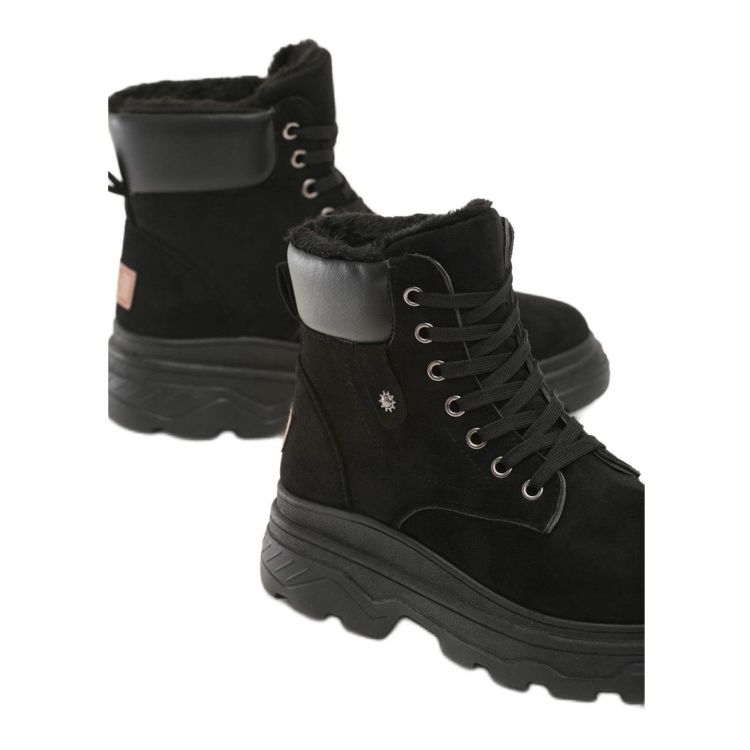 Das hohe Obermaterial aus Öko-Wildleder und Faux-Wildleder sorgt für Strapazierfähigkeit und Tragekomfort, die warme Isolierung garantiert Komfort auch an kälteren Tagen. Die runde Spitze sorgt für einen klassischen Look und die flache, dicke Sohle sorgt für hervorragenden Halt und Stabilität.