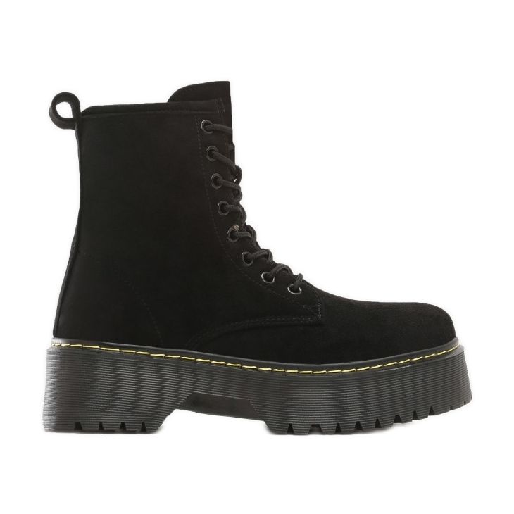 Die Stiefel sind mit einer starken, dicken 5 cm hohen Plattform ausgestattet, die nicht nur für Stabilität sorgt, sondern auch ein paar Zentimeter an Höhe hinzufügt. Die Anti-Rutsch-Beschichtung der Sohle ermöglicht Ihnen ein sicheres Auftreten unter verschiedenen Bedingungen. Darüber hinaus garantiert der weiche, profilierte Inneneinsatz Komfort auch bei längerem Tragen.