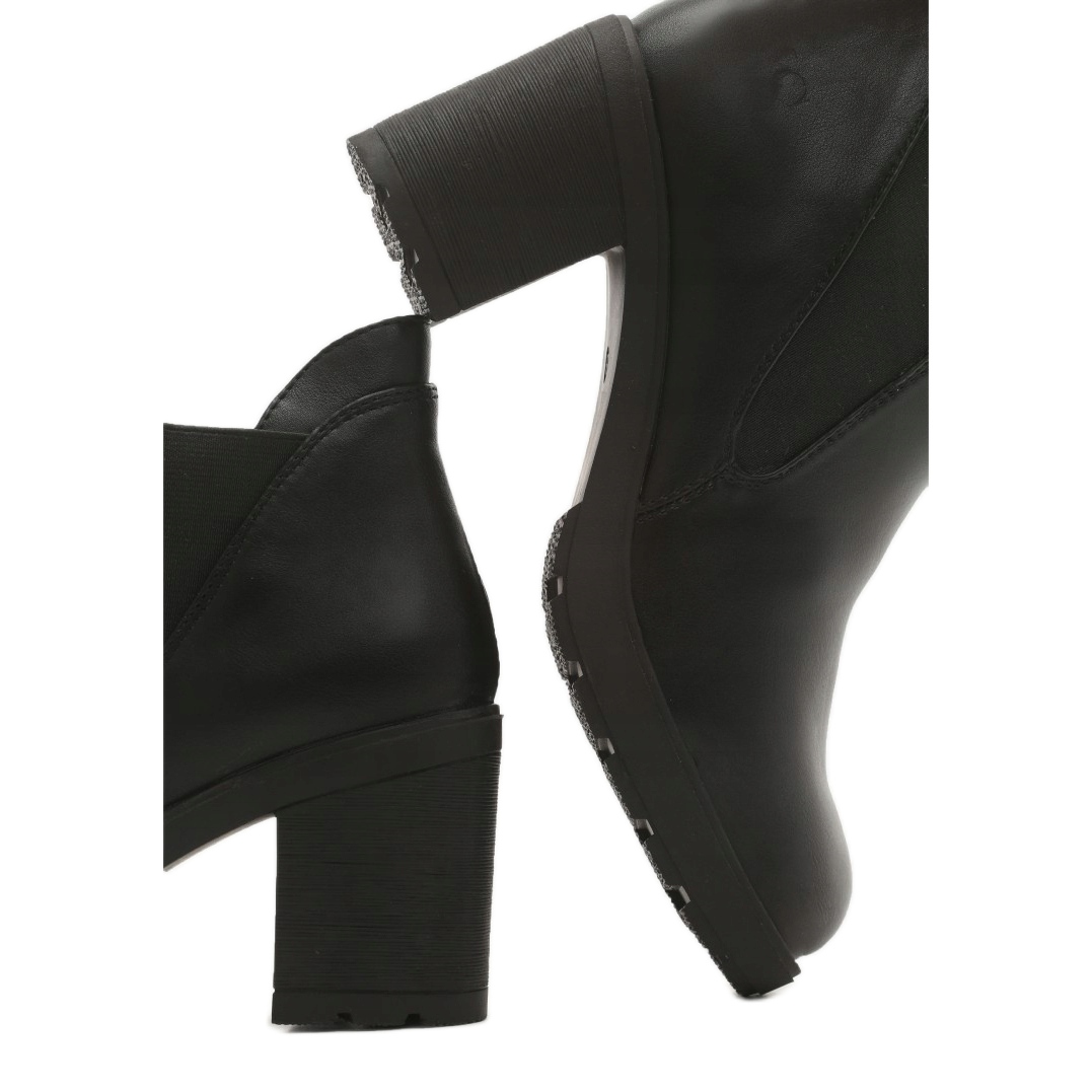 Das Obermaterial der Stiefel besteht aus hochwertigem ökologischem Leder, was sie umweltfreundlich macht. Dank der elastischen Einsätze auf beiden Seiten des Obermaterials ist das An- und Ausziehen schnell und einfach, was jede vielbeschäftigte Frau zu schätzen wissen wird. Ein zusätzlicher Vorteil ist die leichte Isolierung, die an kälteren Tagen für Komfort und Wärme sorgt.
