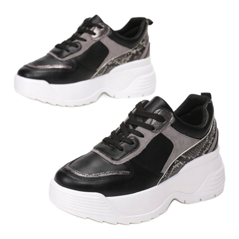 Die Damen-Sneaker Vices 8541-38 in Schwarz sind die perfekte Wahl für Frauen, die Wert auf Stil und Komfort legen. Diese Schnür-Sportschuhe zeichnen sich durch ein modernes Design aus, dank einer dicken Sohle mit Prägung, die für Tragekomfort sorgt. Die aus hochwertigem Faux-Wildleder und Öko-Wildleder gefertigten Sneaker sind mit eleganten Nähten und Einsätzen im Schlangenhaut-Stil verziert, was ihnen einen einzigartigen Charakter verleiht.