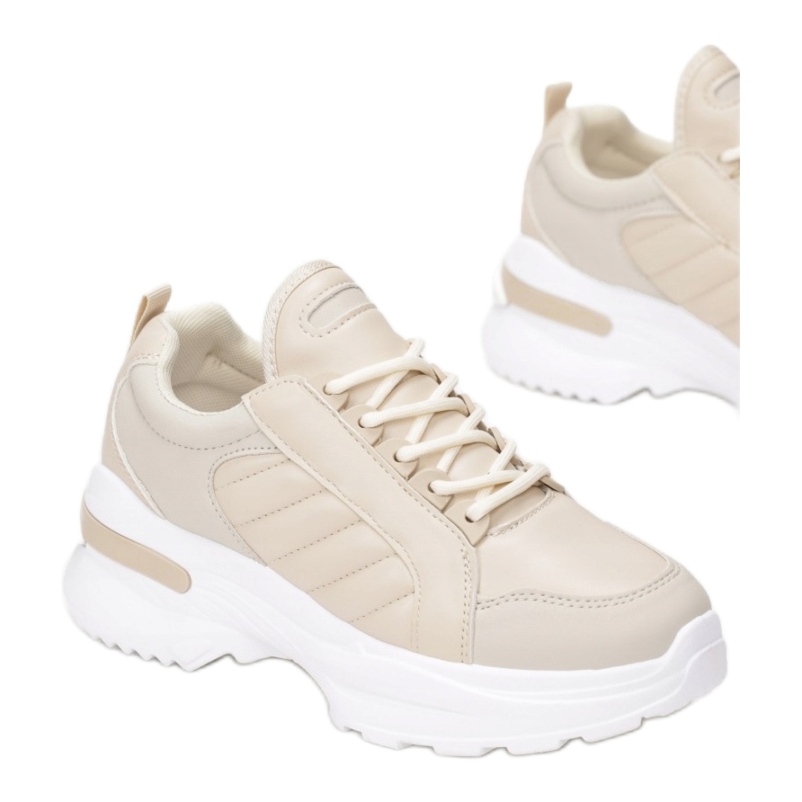 Wir präsentieren die Sneakers Vices 8554-42 in einem eleganten Beigeton – perfekt für Frauen, die Wert auf die Kombination von Stil und Komfort legen. Diese niedrigen Sportschuhe mit modernem Design fallen durch eine abgerundete Spitze und einen einzigartigen Ausschnitt in der Mitte auf, der ihnen einen unverwechselbaren Look verleiht.