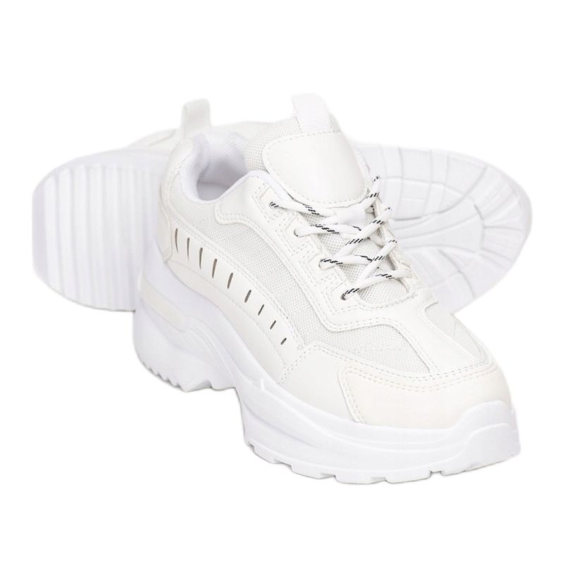 Die Sneakers Vices 8555-71-white sind eine gute Wahl für Frauen, die nicht nur Wert auf einen modischen Look, sondern auch auf Tragekomfort legen. Diese weißen Schnürschuhe mit dicker, unregelmäßiger Sohle und unterschiedlich geformtem Profil eignen sich sowohl für den Alltag als auch für körperliche Aktivitäten.