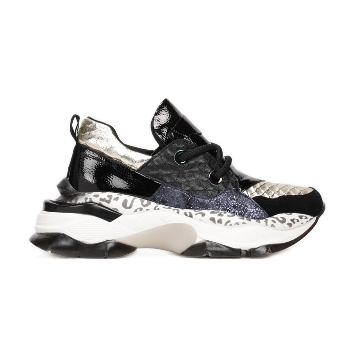 Die Sneakers Vices 8556-38 in Schwarz mit mehrfarbigen Akzenten sind die perfekte Wahl für Frauen, die modische und bequeme Sportschuhe suchen. Diese Schnürsneaker mit Knöcheloberteil zeichnen sich durch ein originelles Design aus, das durch verschiedene Einsätze in verschiedenen Farben und Texturen ins Auge fällt.
