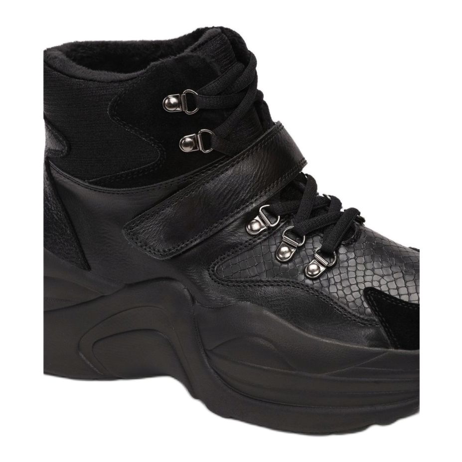 Die schwarzen Sneakers Vices 8599-38 sind die perfekte Wahl für Frauen, die Wert auf Komfort und einen modischen Look legen. Diese High-Top-Sportschuhe sind aus hochwertigem Faux-Wildleder gefertigt, was sie nicht nur stilvoll, sondern auch umweltfreundlich macht. Die runde Spitze und die dicke Sohle sorgen nicht nur für Komfort, sondern auch für ausreichend Stabilität bei alltäglichen Aktivitäten.
