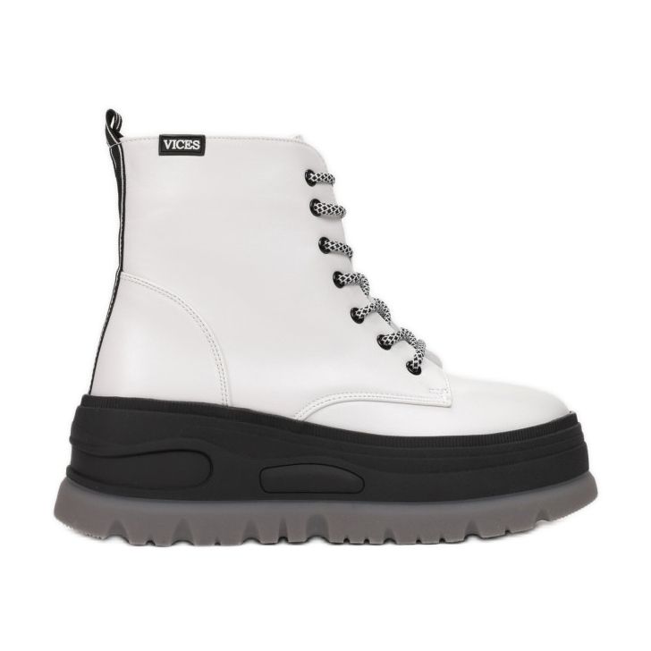 Wir präsentieren die Stiefeletten Vices 8603-71 in Weiß, die die perfekte Kombination aus Stil und Komfort darstellen. Diese Schnürstiefeletten mit dicker Sohle aus der KeeShoes-Kollektion sind ein Must-Have-Element jeder modischen Damengarderobe.