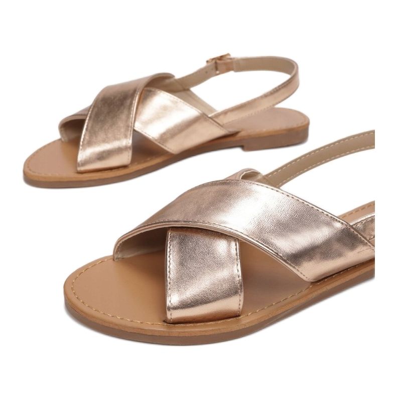 Entdecken Sie Eleganz und Komfort mit den goldenen Sandalen Vices 8839-754-449. Diese stilvollen flachen Sandalen sind die perfekte Wahl für Frauen, die Wert auf modisches Design und Tragekomfort legen. Dank der abgerundeten Vorderseite und den offenen Zehen sehen Ihre Füße frei und leicht aus.