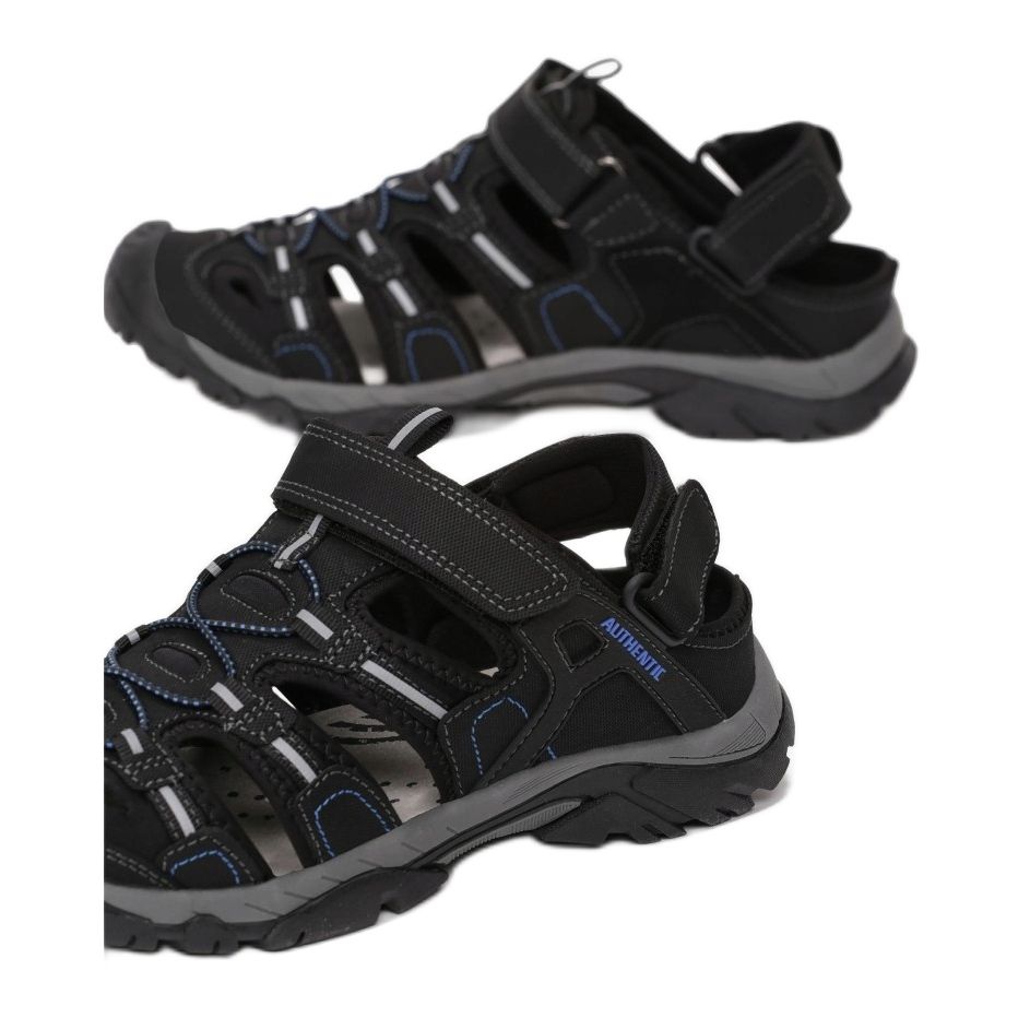 Die Sandalen Vices 9SD9155-R-156 in Schwarz mit blauen Akzenten sind die perfekte Wahl für Männer, die Wert auf Komfort und Stil legen. Auf einer dicken, zweifarbigen Sohle montiert, bieten sie dank eines speziellen Profils hervorragenden Halt und sind somit ideal für verschiedene Untergründe.