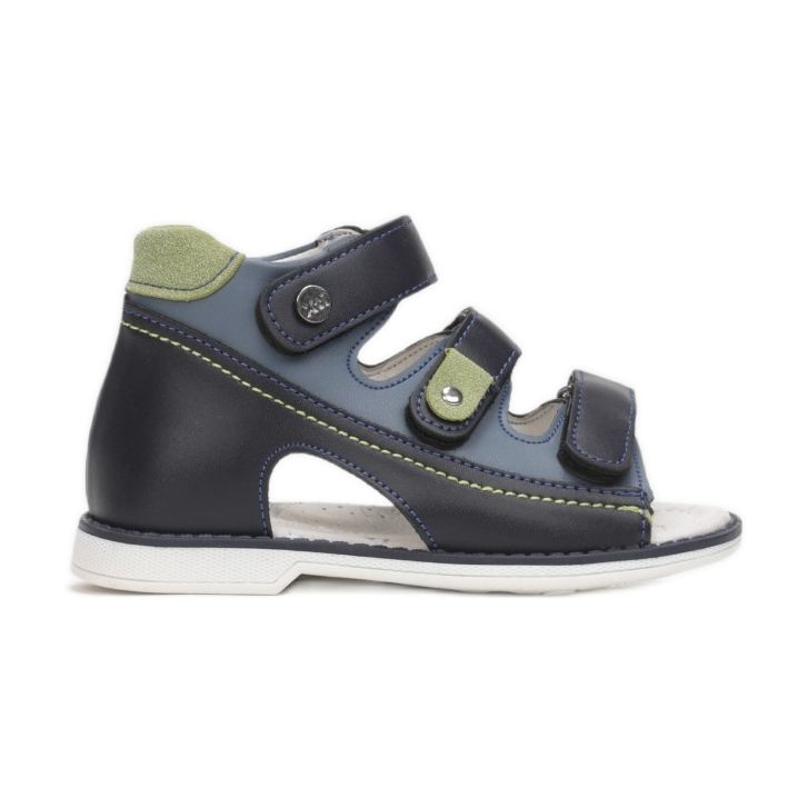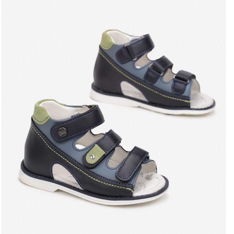 An der Vorderseite befinden sich drei mit Klettverschluss befestigte Riemen, die das Anziehen und Anpassen der Schuhe an den Kinderfuß erleichtern. Ziernähte verleihen den Sandalen einen einzigartigen Charakter und die offene, runde Spitze lässt die Beine an warmen Tagen atmen.