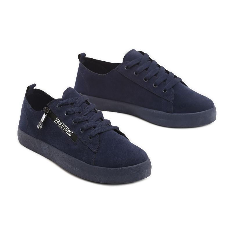 Die blauen Sneakers Vices B846-12 D sind eine ideale Option für Frauen, die stilvolle und bequeme Alltagsschuhe suchen. Sie bestehen aus hochwertigem ökologischem Leder in der Farbe Marineblau und passen perfekt zu den neuesten Modetrends. Die runde Spitze sorgt für angenehmen Tragekomfort und der flache, 2 cm hohe Absatz eignet sich sowohl zum Spazierengehen als auch zum lässigen Styling.