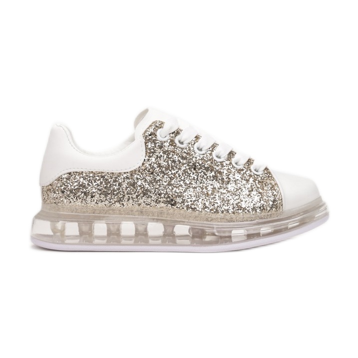 Ein zusätzlicher Vorteil der Sneaker sind Glitzereinsätze an den Seiten, die ihnen einen einzigartigen Charakter und Glanz verleihen. Dank flacher Schnürsenkel lassen sie sich perfekt an den Fuß anpassen, was Stabilität bei der Nutzung garantiert.