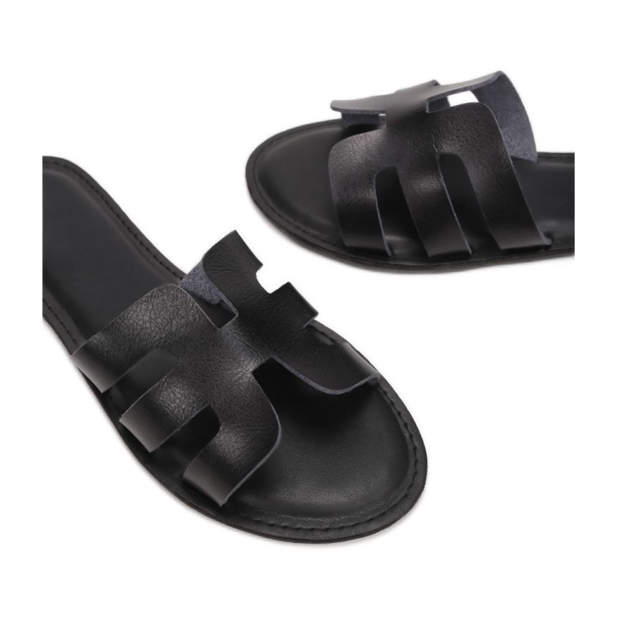Die zehenstegsandalen CM-55-97-38 von Vices in elegantem Schwarz sind die perfekte Wahl für Frauen, die jeden Tag Wert auf Komfort und Stil legen. Diese Slipper zeichnen sich durch eine flache Sohle und einen breiten Riemen aus, der den Fuß effektiv stützt. Die geometrischen, tiefen Ausschnitte des Gürtels verleihen ihm einen modernen Charakter und das metallische Kunstleder-Finish hebt ihn von anderen Modellen ab.