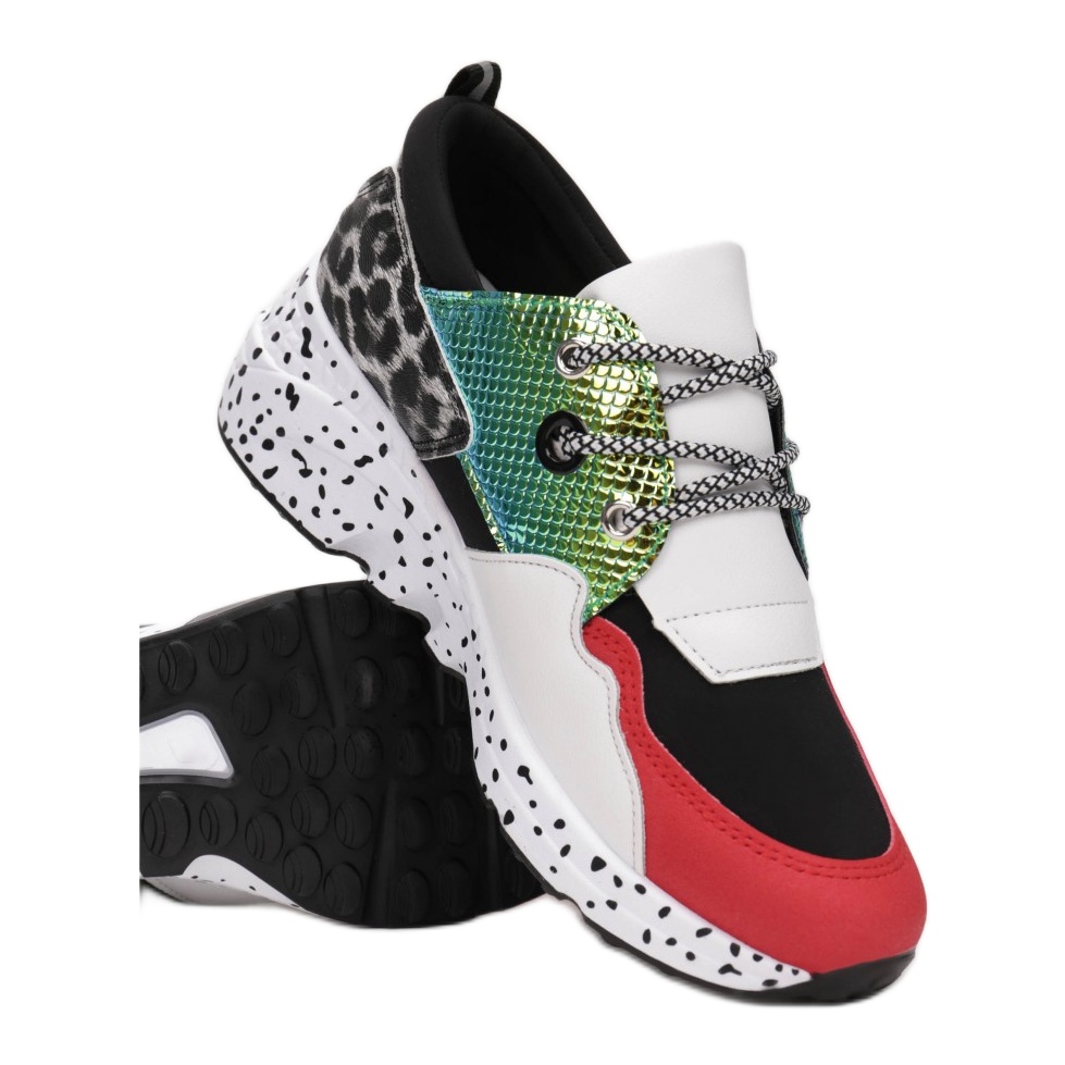 Wir präsentieren die Sportschuhe Vices FY-68-38 in Schwarz mit mehrfarbigen Akzenten – eine ideale Wahl für aktive Frauen, die Wert auf Komfort und modisches Design legen. Diese niedrigen Damenschuhe aus der Modne-Kollektion vereinen Funktionalität und Stil und eignen sich daher sowohl für das Training als auch für das Alltags-Styling.