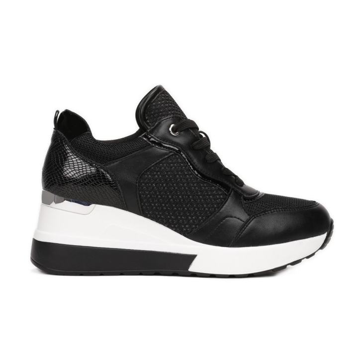 Die Sneakers Vices HQ260-38 in elegantem Schwarz sind die perfekte Wahl für Frauen, die Wert auf Mode und Komfort legen. Das mit Einsätzen verzierte Obermaterial, das den Knöchel freigibt, zieht die Blicke auf sich und außergewöhnliche Elemente in Form eines Mesh-Motivs und einer Metallic-Beschichtung machen diese Schuhe zu einem echten Highlight in jedem Styling.