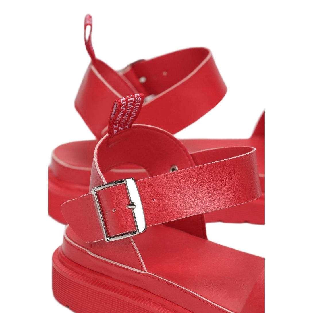 Die durchschnittliche Plateauhöhe von 4 cm sorgt für Komfort im Alltag und die Synthetiksohle mit Protektor sorgt für ausreichend Halt. Dank ihrer einheitlichen roten Farbe passen diese Sandalen perfekt zu verschiedenen Stilen und verleihen ihnen etwas Frische und Energie.