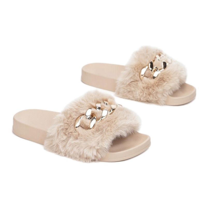 Wir präsentieren die Slip-on-Slides „Vices NA18-42“ in einem eleganten Beigeton, die Komfort und modisches Design perfekt vereinen. Diese stilvollen zehenstegsandalen zeichnen sich durch einen breiten Riemen aus Fellimitat aus, der ihnen außergewöhnlichen Charme verleiht und ihnen einen hohen Tragekomfort verleiht. Die kettenförmige Applikation oben am Gürtel verleiht ihnen etwas Extravaganz, was sie zu einer idealen Wahl sowohl für den täglichen Gebrauch als auch für verschiedene Anlässe macht.