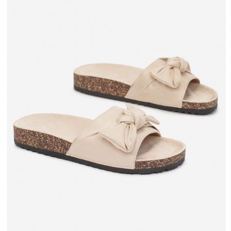 Wir präsentieren die Slip-On-Slipper Vices THS-35-42 in einem eleganten Beigeton, der Komfort mit einem modischen Look verbindet. Diese stylischen zehenstegsandalen verfügen über eine runde Spitze und eine profilierte Innensohle und sorgen so für eine perfekte Passform an jedem Fuß.