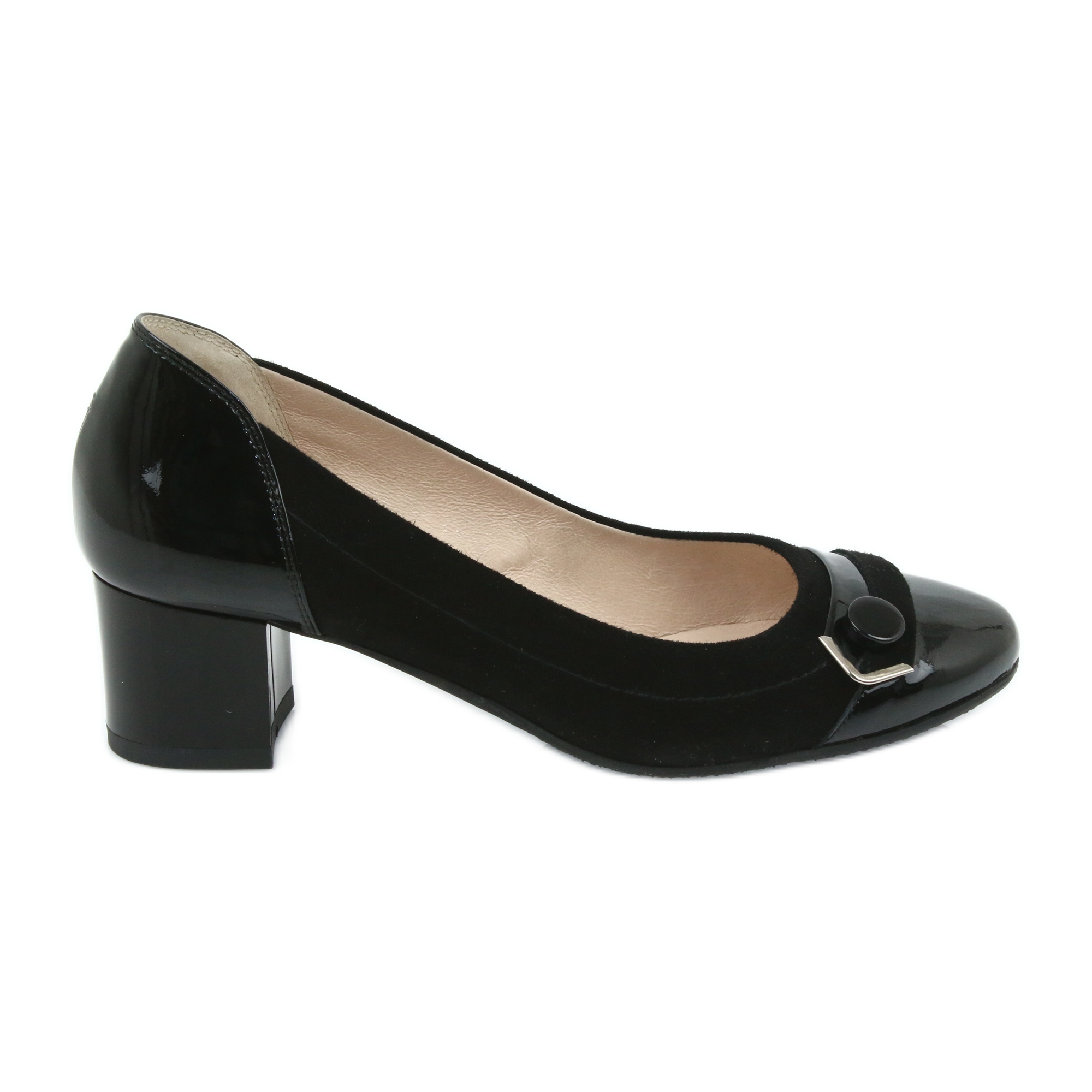Das Innere der Pumps wurde sorgfältig mit Naturleder verarbeitet, was Komfort und Atmungsaktivität auch nach längerem Gebrauch garantiert. Der Slip-On-Verschluss und der Verzicht auf zusätzliche Elemente machen das Tragen äußerst einfach und bequem.