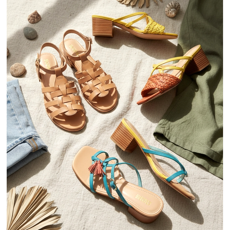Die Farben der Sandalen und Pantoletten für das Frühjahr 2026 sind eine von der Natur inspirierte Palette. Es dominieren Sand-, Terrakotta-, Olivgrün- und Meeresblautöne. Für Mutige bieten Designer leuchtende Akzente in Form von Zitronengelb oder intensivem Koralle.