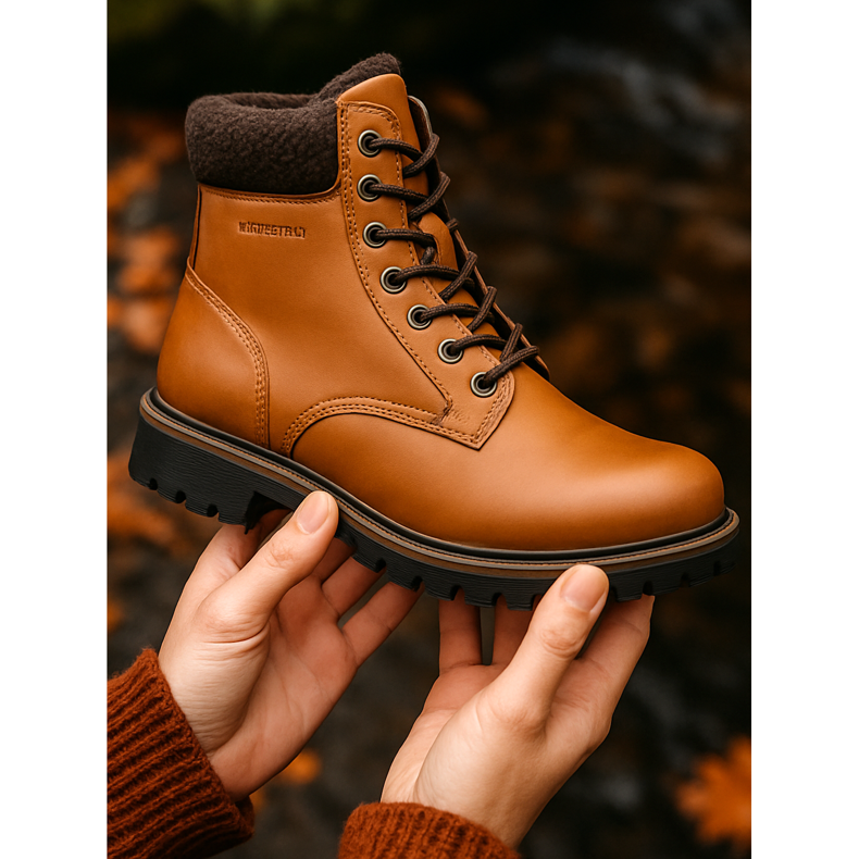 Wasserdichte Leder -Traper eignen sich ideal für Gelegenheitsliebhaber. Bequem, praktisch und modisch - sie arbeiten sowohl für Spaziergänge im Wald als auch für die Stadt.