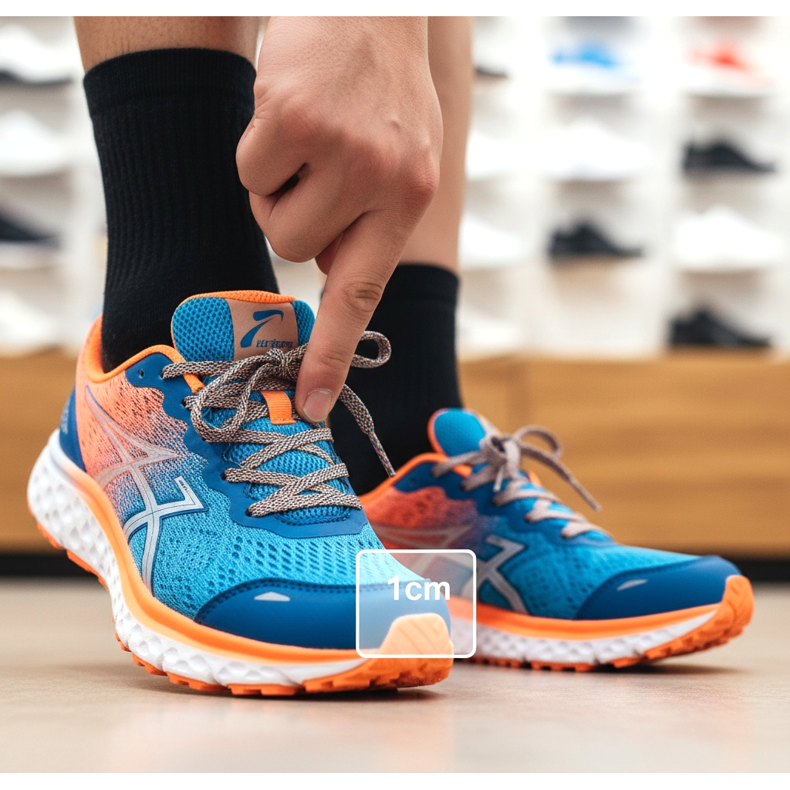Viele Sportverletzungen resultieren aus unterschiedlichen Schuhgrößen. Zu enge Schuhe können Blasen und eingewachsene Zehennägel verursachen, während zu lockere Schuhe Blasen und Instabilität verursachen können. Als Faustregel gilt: Zwischen der Schuhspitze und Ihrem langen Zeh sollte ein Abstand von der Breite eines Fingers (ca. 1 cm) sein. Schuhe sollten auch nach längerem Tragen gut gepflegt werden – kaufen Sie sie am Ende des Tages, wenn Ihre Füße leicht geschwollen sind. Denken Sie daran, dass die Schuhgrößen von Marke zu Marke unterschiedlich sein können. Probieren Sie sie daher vor dem Kauf immer an.