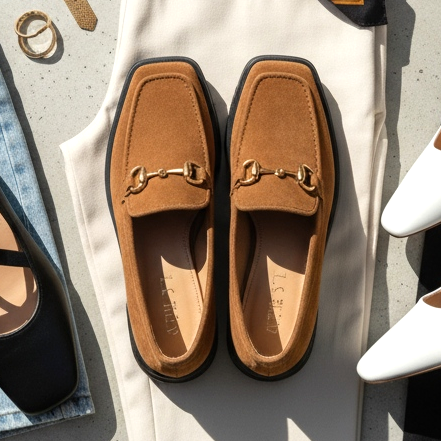 Loafer mit eckiger Spitze passen perfekt zu eleganten weiten Hosen, High-Waist-Jeans oder Kleidern mit Hemdkragen. Diese Kombination zeigt Stil mit einem leichten Hauch von Androgynie – stark, entschlossen und voll im Trend im Jahr 2026.