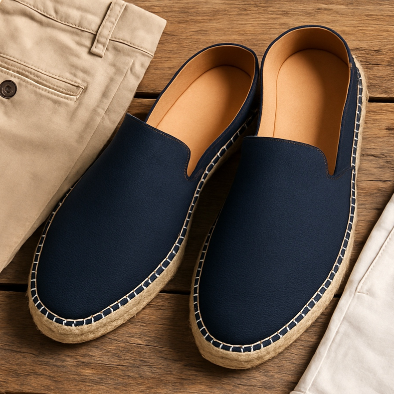 Espadrilles sind ikonische Sommerschuhe, oft aus Canvas oder Leinen, mit einer charakteristischen geflochtenen Jute- oder Sisalsohle. Herren-Espadrilles können einen offenen Absatz (Slip-on-Mules) oder eine geschlossene Form haben. Sie eignen sich perfekt zum lässigen Styling mit Shorts, Chinos oder Leinenhosen. In gedeckten Farben (Beige, Marineblau, Khaki) oder mit Print erhältlich, sind sie der Inbegriff sommerlicher Lässigkeit. Für mehr Komfort lohnt es sich, Modelle mit Ledereinsatz zu wählen.