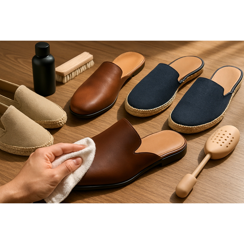 Lederpantoletten sollten regelmäßig mit einem feuchten Tuch gereinigt und mit Lederpräparaten imprägniert werden, um Schäden durch Feuchtigkeit und Sonne vorzubeugen. Espadrilles und Babuschkas aus Stoff können mit einer Bürste und Seife gereinigt werden, ohne dass die Jute- oder Websohle durchnässt wird. Es ist wichtig, Ihre Schuhe nach jedem Gebrauch zu lüften, insbesondere wenn Sie barfuß getragen werden. Die Verwendung duftender und antibakterieller Pads trägt zur Erhaltung der Frische bei. Lagern Sie sie an einem kühlen, luftigen Ort und vermeiden Sie direkte Sonneneinstrahlung.