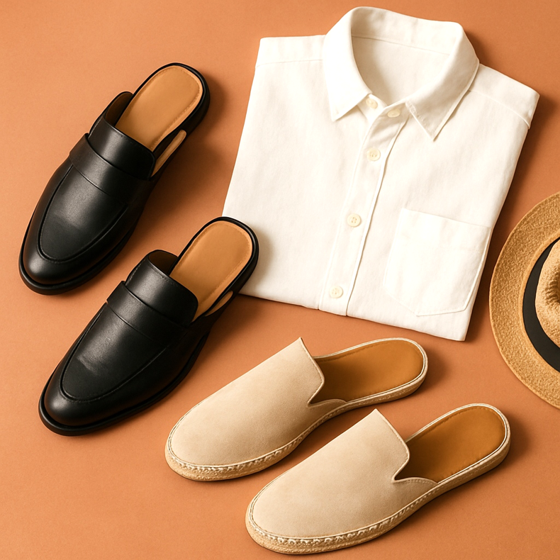 Entdecken Sie elegante und lässige Herrenschuhe mit offenem Absatz, perfekt für warme Tage. Espadrilles, Pantoletten und Babuschkas als Herrenversion – ein Styleguide.