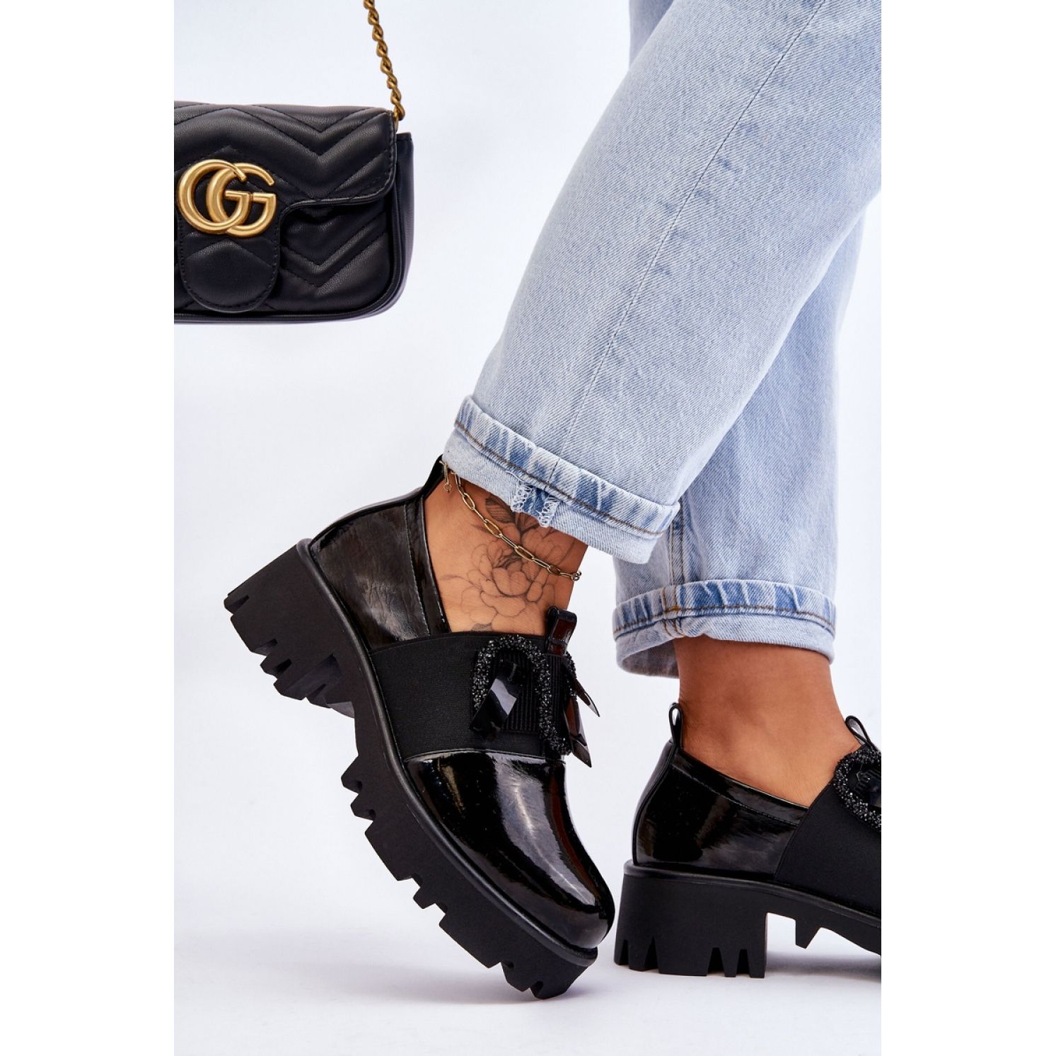 Schuhe Model Keily Mr-y85 Black aus The Step in Style Brand ist eine gute Wahl für Frauen, die eine Kombination aus Komfort und Eleganz schätzen. Diese ungewöhnlichen Schuhe, die in eine flache, massive Ferse und eine solide Plattform mit einer Höhe von 3 cm eingebettet sind, sorgen für Stabilität und Komfort, den ganzen Tag zu tragen.