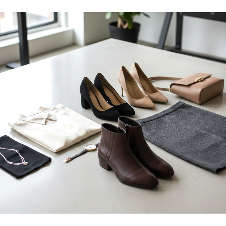 Auch Schuhe in neutralen Farben – Schwarz, Beige oder Braun – sind eine sichere Lösung. Diese Farben passen zu den meisten Stilen und eignen sich sowohl für das Büro als auch für den Alltag.