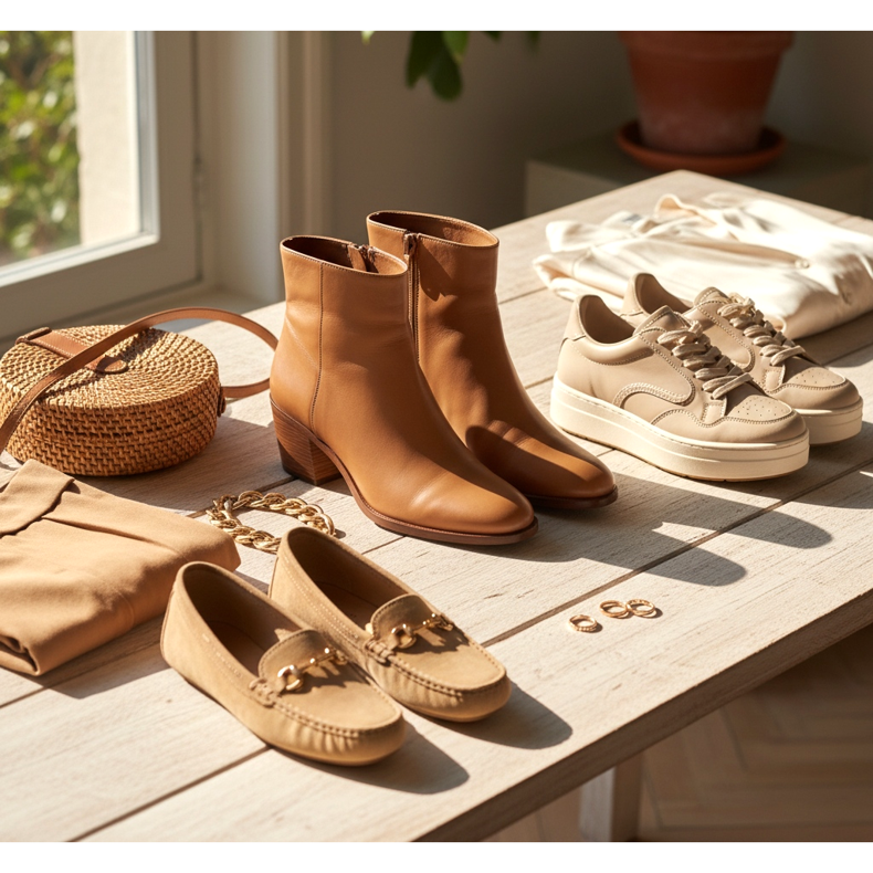 Natürliche Farben – Kamel, Beige, Sand – liegen im Trend. Für das Frühjahr 2026 kehren diese Farben in neuen Farbtönen zurück. Diesmal liegt der Schwerpunkt auf eher warmen, gelben Nuancen, die sich perfekt mit braunem und goldenem Schmuck kombinieren lassen. Kamelstiefel, beige Sneaker oder sandfarbene Mokassins sind universelle Optionen, die sowohl für die Arbeit als auch für den Alltag gut funktionieren. Die Kombination von neutralen Schuhen mit neutralen Hosen ist eine Möglichkeit, einen unsterblichen, klassischen Stil zu erreichen. Die perfekte Frühlingssonne spiegelt sich auf den Kameloberflächen und verleiht ihnen Wärme und Eleganz.