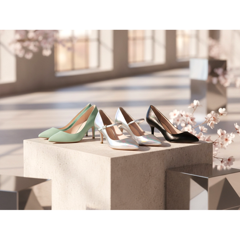 Eine der berühmtesten Neuheiten der Saison ist die Rückkehr der Kitten Heels. Diese niedrigen, schmalen Absätze mit einer Höhe von 3 bis 5 cm schaffen die perfekte Balance zwischen Eleganz und Komfort. Auf den Laufstegen dominierten Modelle mit spitzer Spitze, in Pastellfarben und Metallic-Varianten.