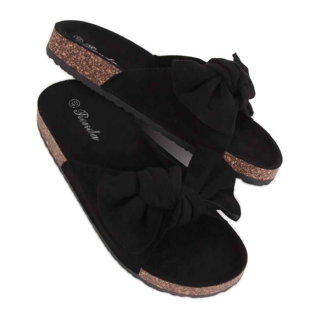 Inna marka Schwarz 10-218 Schwarze Hausschuhe mit Korksohle