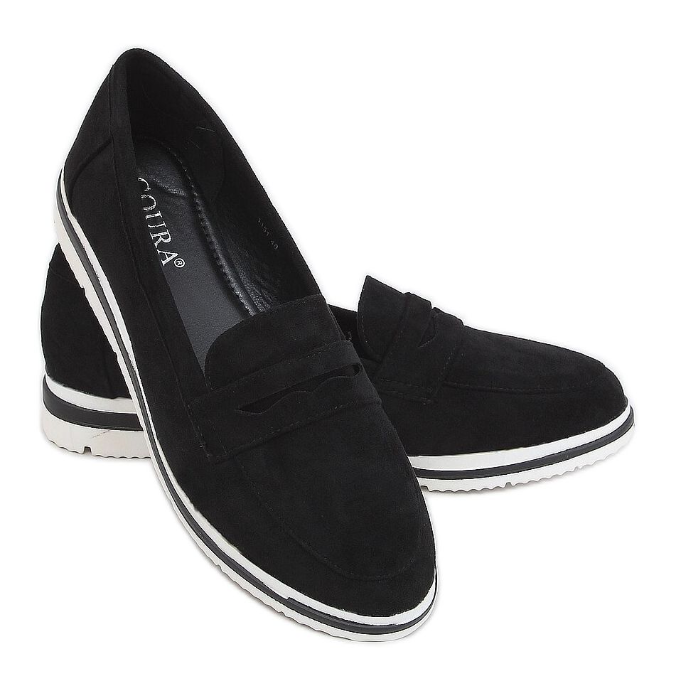Inna marka Schwarz 1151 Schwarze Loafer mit hohen Sohlen