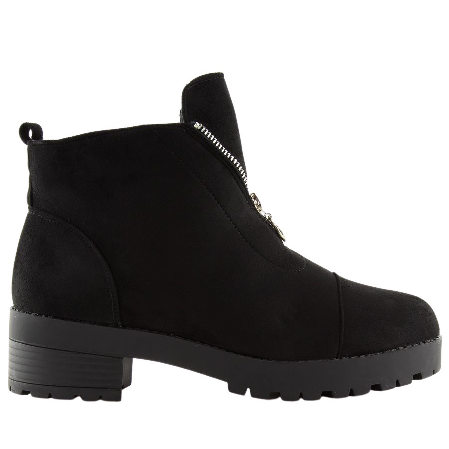 2017-3 Schwarze Stiefeletten mit hohen Sohlen sind eine perfekte Ergänzung für jede Damengarderobe. Diese eleganten und stilvollen Schuhe aus ökologischem Wildleder vereinen klassisches mit modernem Design. Die dickere Trapezsohle sorgt für Komfort und Stabilität und die Höhe von 4,5 cm macht sie perfekt für den täglichen Gebrauch.